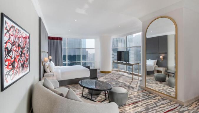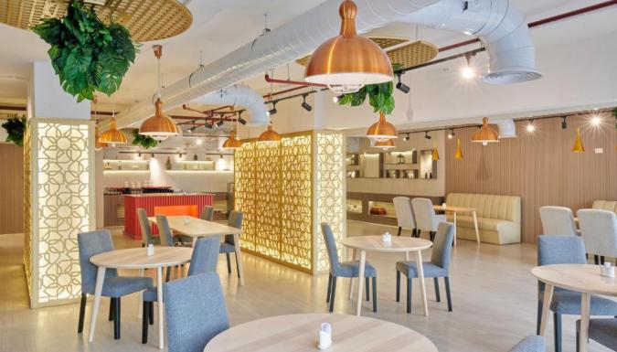 По утрам для гостей сервируют завтрак «шведский стол», завтрак по меню или континентальный завтрак. В ресторане отеля готовят блюда американской, итальянской и ближневосточной кухни. По запросу гостям могут приготовить вегетарианские и халяльные блюда.