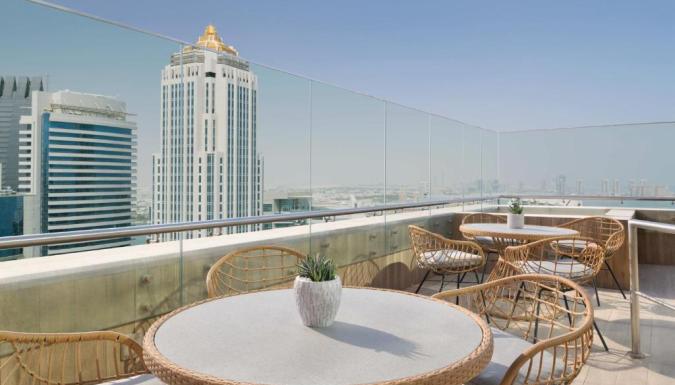 Гости отеля Delta by Marriott City Center Doha могут отдохнуть на террасе.