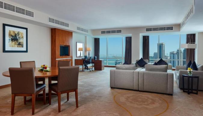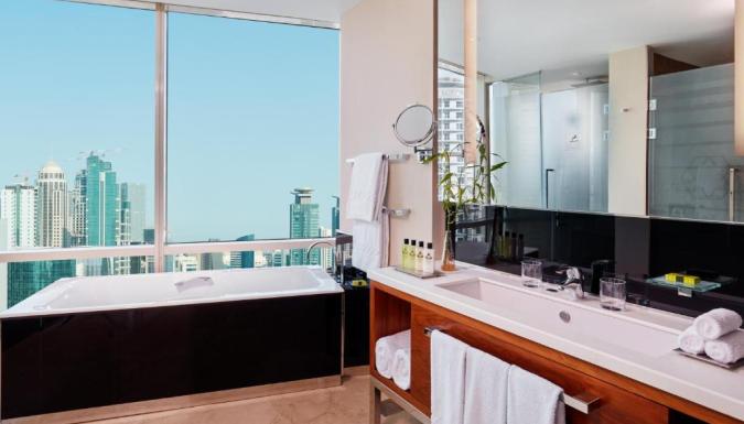 Этот 5-звездочный отель расположен в районе Уэст-Бэй, в городе Доха. К услугам гостей современные номера с телевизором с плоским экраном и люксы с кухней. При отеле работает современный фитнес-центр и открытый бассейн. Торговый центр City Centre находится напротив отеля, а поездка до рынка Сук Вакиф займет несколько минут. На территории работает 4 инновационных ресторана, где подают блюда интернациональной кухни, и 3 лаундж-бара, из одного из которых, расположенного выше остальных в Дохе, открывается потрясающий вид на городской пейзаж. К услугам гостей спортивная площадка на улице, сауна, гидромассажная ванна и сувенирный магазин.