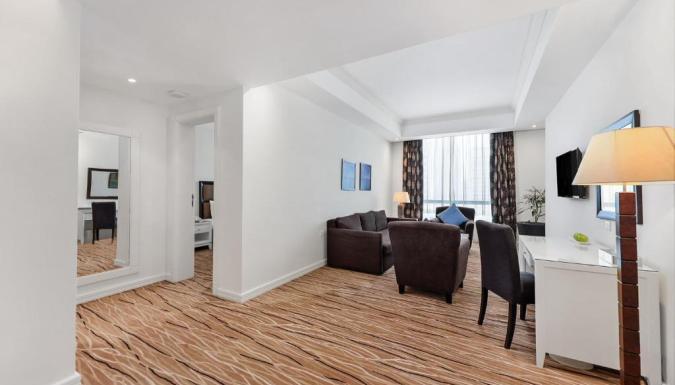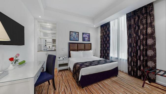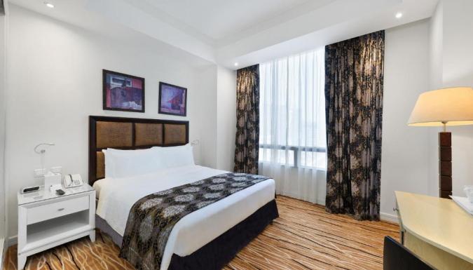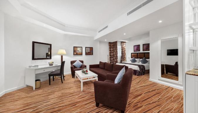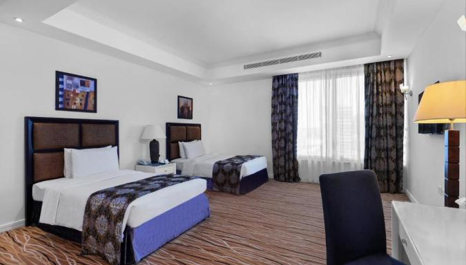 Номера отеля Plaza Inn Doha располагают роскошными кроватями и большими окнами с панорамным видом на город и пристань для яхт. Все они также оснащены кондиционером, мини-баром и принадлежностями для чая/кофе.