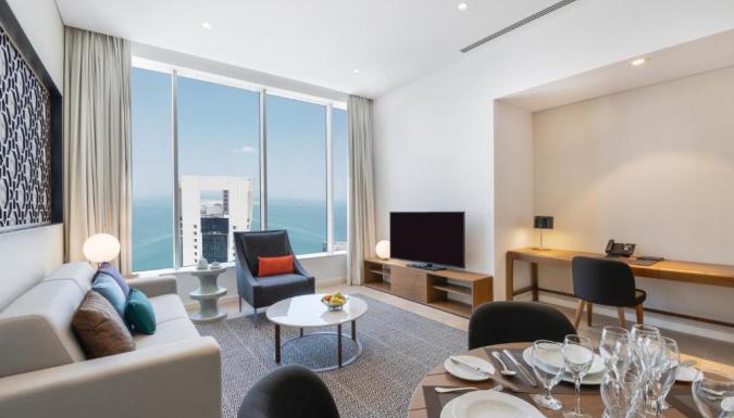 Апарт-отель Aleph Doha Residences, Curio Collection By Hilton расположен в Дохе, в 5,5 км от Международного выставочного центра Катара и в 4,5 км от стадиона «Катар Спортск Клаб». К услугам гостей люксы с кондиционером и бесплатным Wi-Fi, а также ресторан и бар. В числе удобств также гидромассажная ванна.
