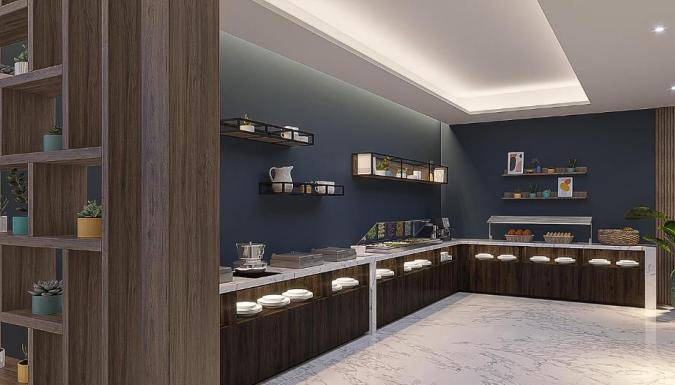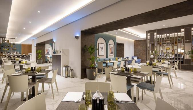 Фирменный ресторан The Social состоит из 2 зон, крытой и на свежем воздухе. Здесь подают лучшие в Дохе блюда западной, восточной и ближневосточной кухни с обслуживанием по меню, а также сервируют уникальный завтрак «шведский стол».