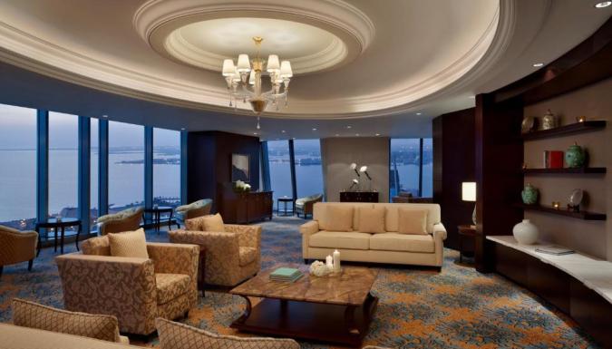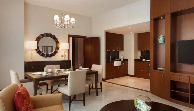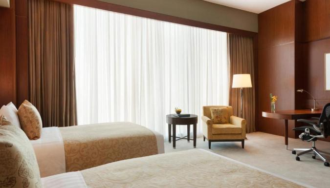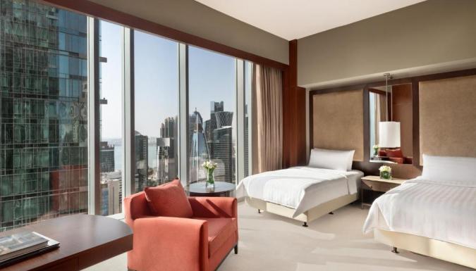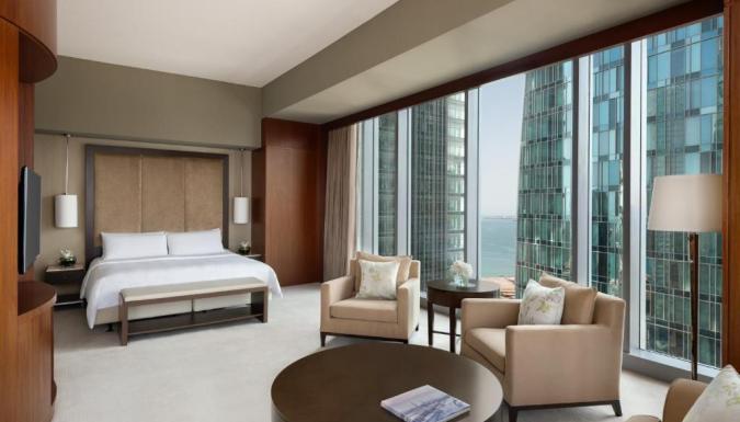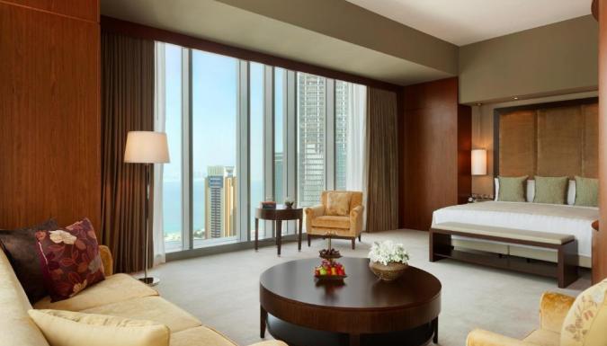 К услугам гостей 272 современных, стильно оформленных в теплых тонах номера и люкса с прекрасным естественным освещением и французскими окнами, из которых открывается живописный вид на город и Персидский залив.