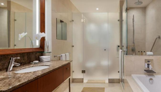 Отель JW Marriott Marquis City Center Doha, насчитывающий 50 этажей и соединенный с торговым центром Doha City Centre, возвышается над фешенебельным районом Уэст-Бэй. Отель расположен в финансовом и коммерческом центре Катара, в нескольких минутах ходьбы от выставочного и конгресс-центра Дохи (DECC). От отеля легко добраться до делового и дипломатического районов. В отеле работают современные бары и рестораны изысканной кухни. В течение всего дня открыт интерактивный ресторан Sridan. В ресторане Fuego сервируют блюда традиционной южноамериканской кухни. В кафе La Maison Martinez можно отведать отличную выпечку. В баре у бассейна на открытом воздухе подают легкие закуски. Кроме того, гости могут заказать фирменные коктейли в баре The Den с живой фортепианной музыкой или отдохнуть в расслабляющей остановке на террасе Shisha. На 44–45 этажах отеля JW Marriott Marquis City Center Doha расположен превосходный ресторан паназиатской кухни Shanghai Club с потрясающим видом на город. Предоставляется бесплатный Wi-Fi на всей территории. В числе удобств большой голубой бассейн в форме лагуны. В отеле возможны различные варианты проведения досуга: гости могут посетить круглосуточный, полностью укомплектованный фитнес-центр, паровые бани и сауны. В спа-центре Quan Spa с гидротоническим открытым бассейном и 8 процедурными кабинетами можно заказать уникальные расслабляющие и оздоровительные процедуры. Отель отлично походит для проведения корпоративных и общественных мероприятий. В распоряжении гостей большой бесколонный бальный зал, а также 8 менее просторных залов для совещаний, расположенных вокруг центрального холла.