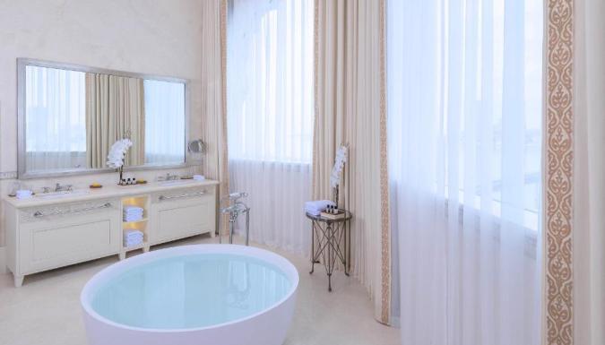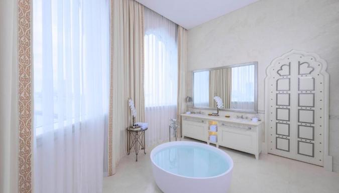 Белоснежный дворец, построенный в традиционном арабском стиле, расположен у частного пляжа, поблизости от главных достопримечательностей Дохи и в 20 км от международного аэропорта Хамад. К услугам гостей — элегантные просторные номера с балконами и восхитительными видами на Аравийское море.