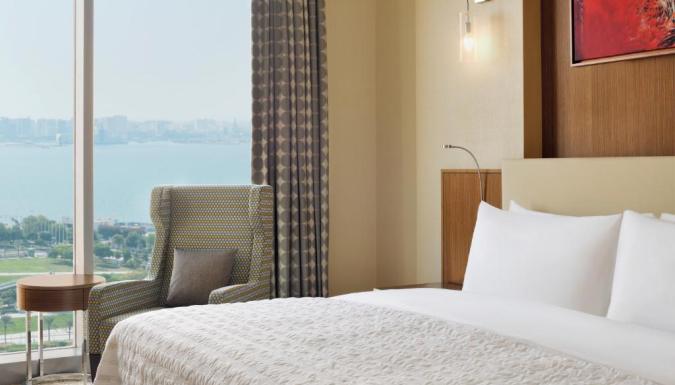 Элегантные номера, люксы и апартаменты с видом на городской пейзаж и Персидский залив. Бассейн, спа и фитнес, эксклюзивные бары и рестораны, конференц-залы.