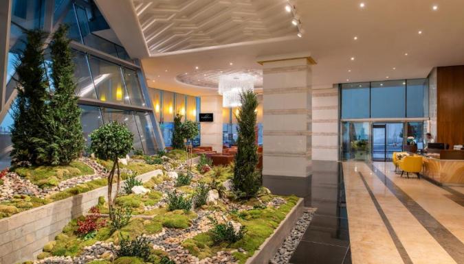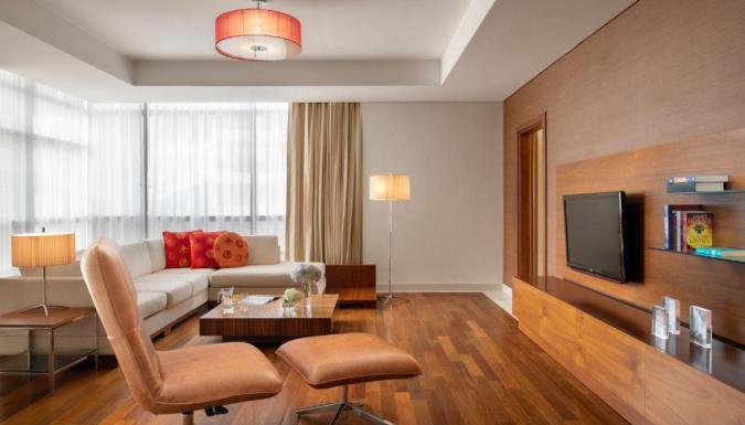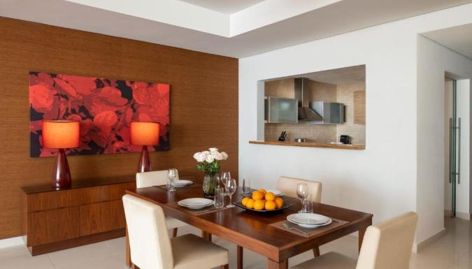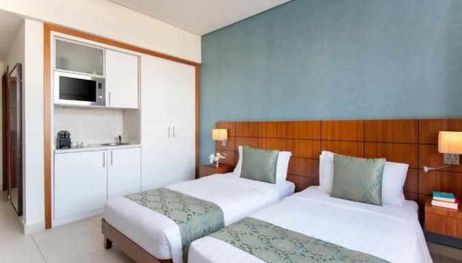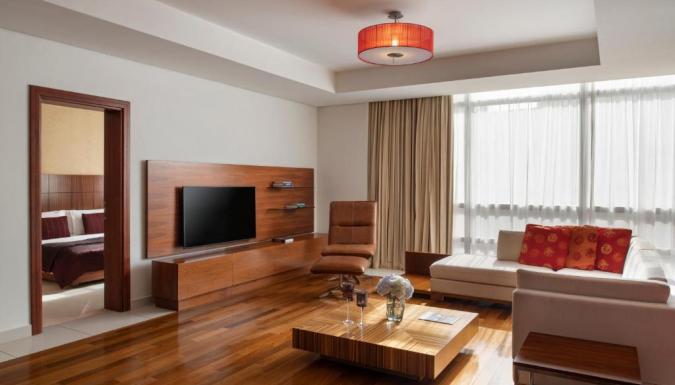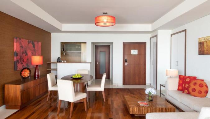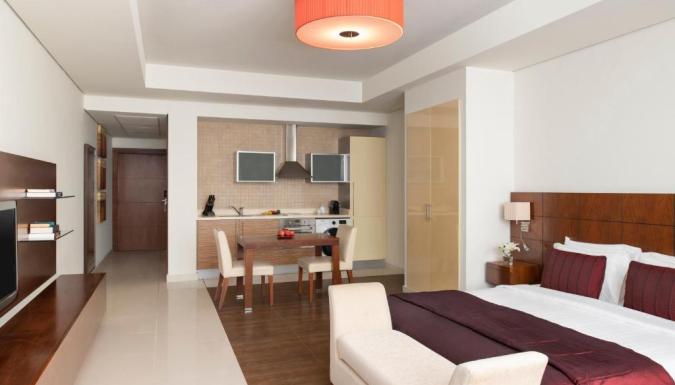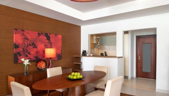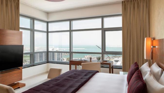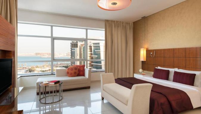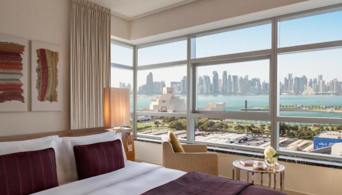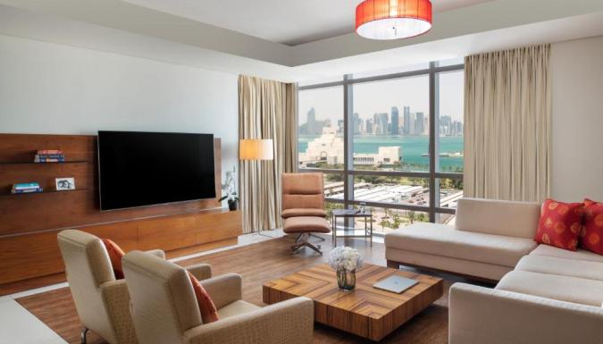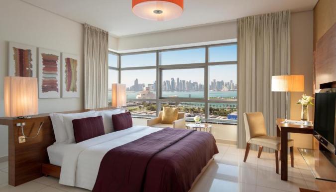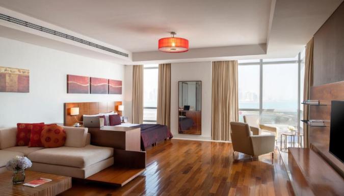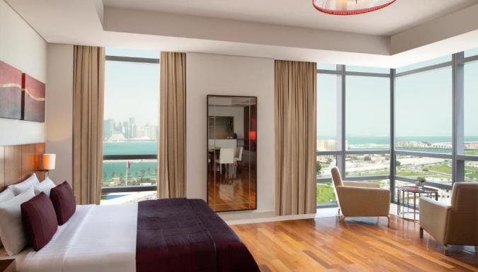 Пятизвездочный комплекс Fraser Suites располагает видом на порт Доха и Индийский океан.