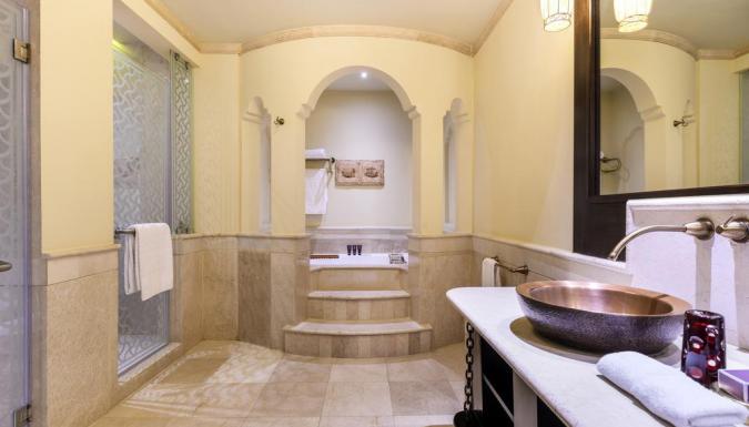 Декорированные в восточном стиле номера отеля Sharq Village украшены деревянными орнаментами. В распоряжении гостей кровать с балдахином. С собственного балкона открывается вид на курорт или залив Доха. В отделанной мрамором ванной комнате установлены глубокая ванна и тропический душ.