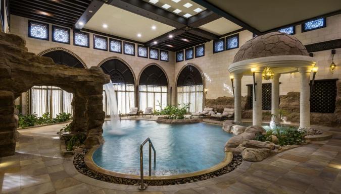 В спа-центре площадью 6500 кв. метров проводятся многочисленные процедуры для кожи и сеансы массажа. Гости могут отдохнуть на удобных шезлонгах в освещенной фонарями зоне релаксации, а также посетить хаммам и сауну.