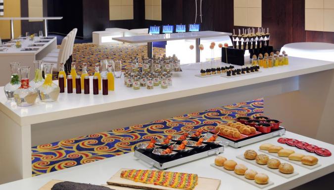 В ресторанах отеля Marriott Marquis City Center Doha подают блюда бразильской и итальянской кухни. В отеле работает большой спорт-бар Champions с отдельными залами, оборудованными телевизором. В снэк-баре у бассейна и баре Glo можно заказать экзотические коктейли. В лаундже Aziza and Shisha можно отведать блюда арабской кухни в традиционной атмосфере.