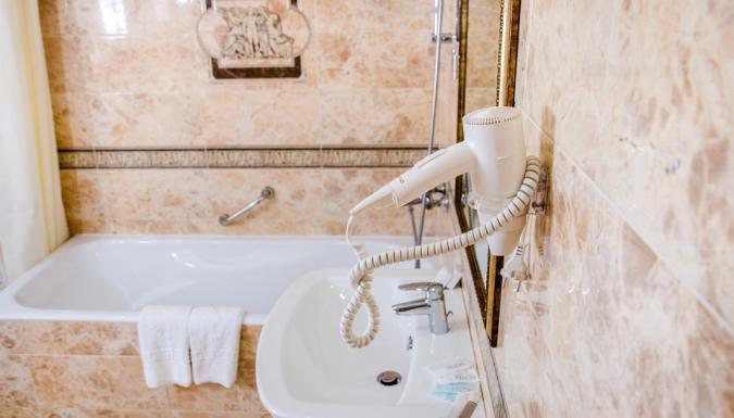 - ванная комната + фен + туалетно-косметические принадлежности