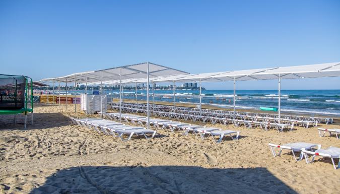 - На пляже проводятся анимационные программы для взрослых и детей, а также отдельная детская игровая зона и волейбольная площадка.