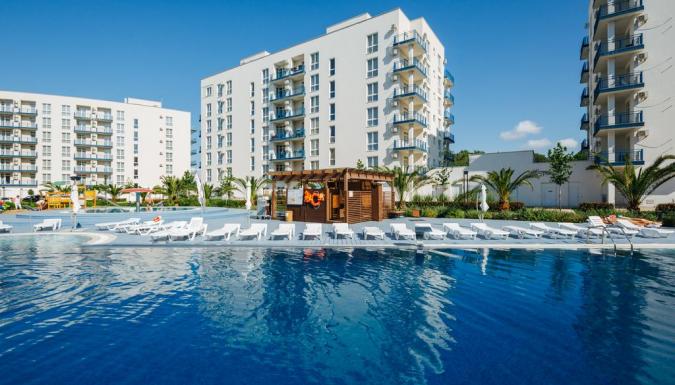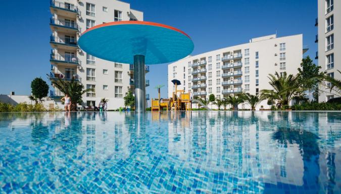 Расположился поблизости от яхтенной марины, на первой береговой линии. Из окон комфортабельных апартаментов открываются виды на море, порт, горы, парк «Южные культуры» и на внутренние дворики квартала. Это место отдыха выбирают любители активного образа жизни и курортного веселья. Каждый час на собственный оборудованный пляж отправляется бесплатный трансфер. Пляжное оборудование и водные развлечения предоставляются за отдельную плату.