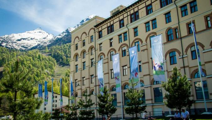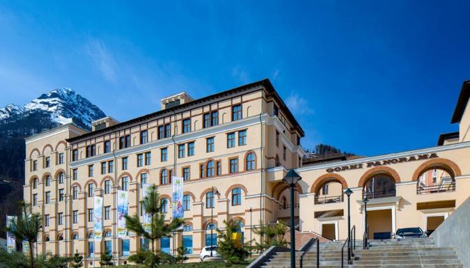 Отель расположен на высоте 960 метров над уровнем моря в поселке Красная Поляна на лоне дикой природы и окрестных пейзажей: горы, заросшие живописными лесами, белые от снега зимой и сияющие зеленью всех оттенков летом. Наибольшей популярностью среди знатоков пользуется зимний отдых в отеле. 5-этажное здание вместимостью не менее 300 человек.Для отдыхающих, предусмотрено немало услуг по аренде, хранению и обслуживанию инвентаря и техники для зимних видов спорта.