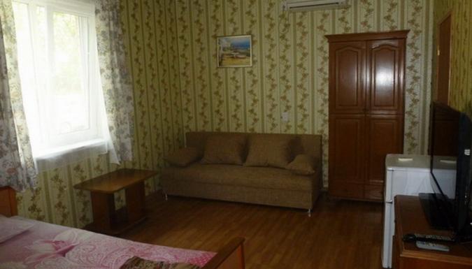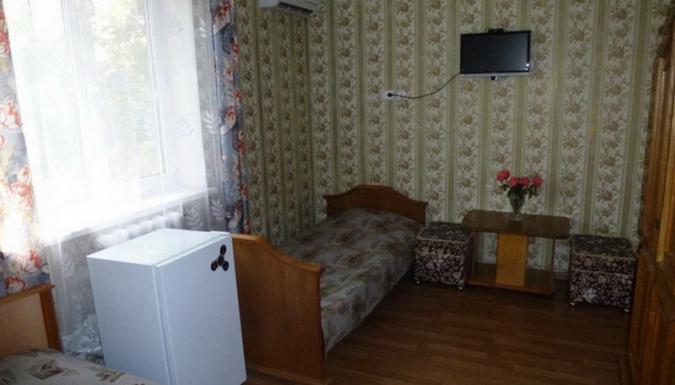 Каждый номер гостевого дома оснащен необходимым набором корпусной мебели, туалетной комнатой с санузлом и душем, (холодная и горячая вода круглосуточно), ЖК-телевизором, холодильником, кондиционером, набором постельных принадлежностей.