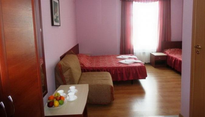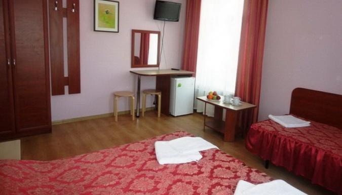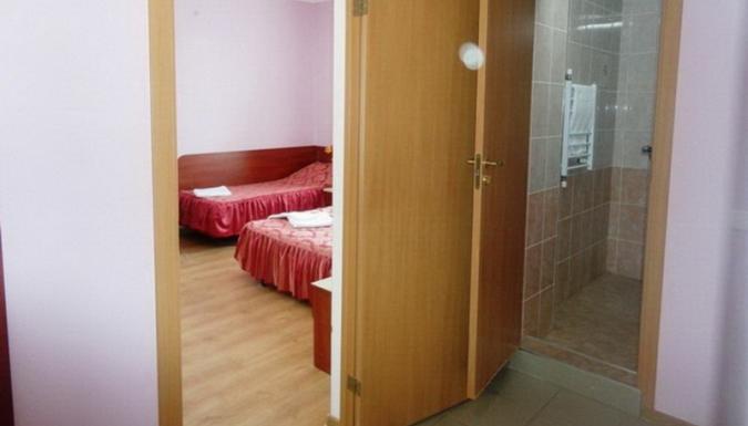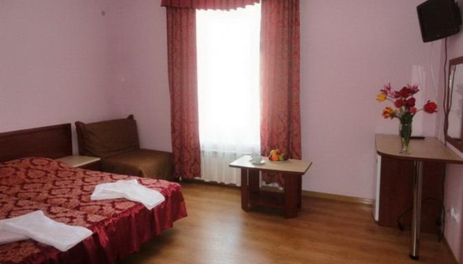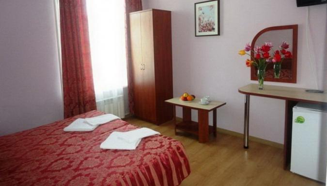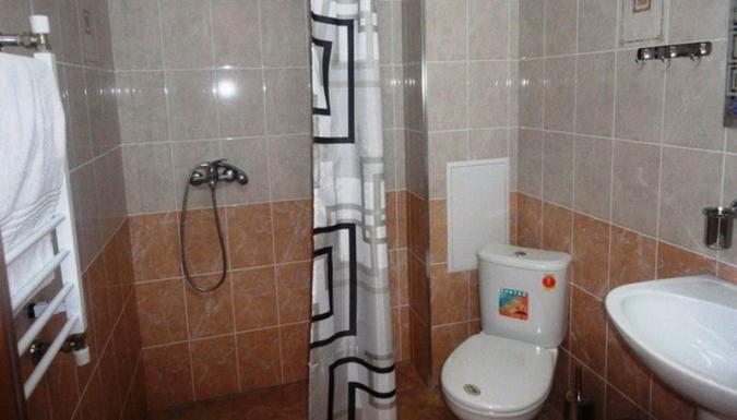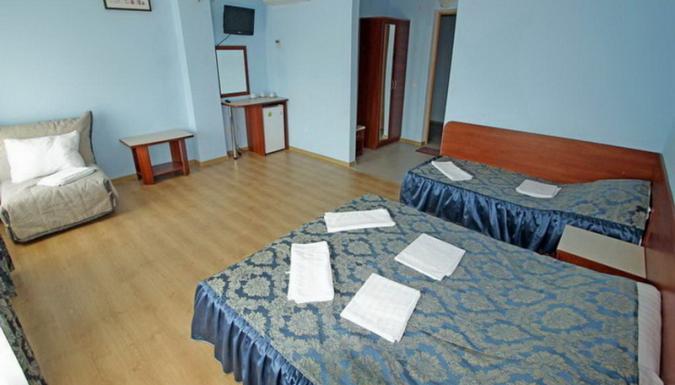 Каждый номер гостевого дома оснащен необходимым набором корпусной мебели, туалетной комнатой с санузлом, (холодная и горячая вода круглосуточно), ЖК-телевизором, холодильником, кондиционером, набором постельных принадлежностей.