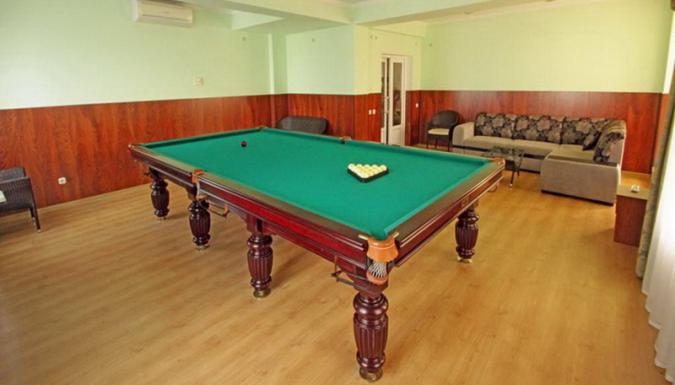Гладильная комната, прачечная, фен, сейф, прокат детской кроватки. Собственная столовая для комплексного питания. Кафе-бар, бильярдная комната. Внутренний дворик с местами для отдыха. Детская площадка.