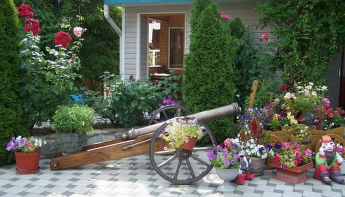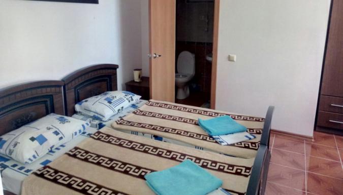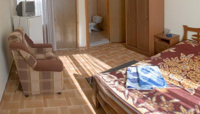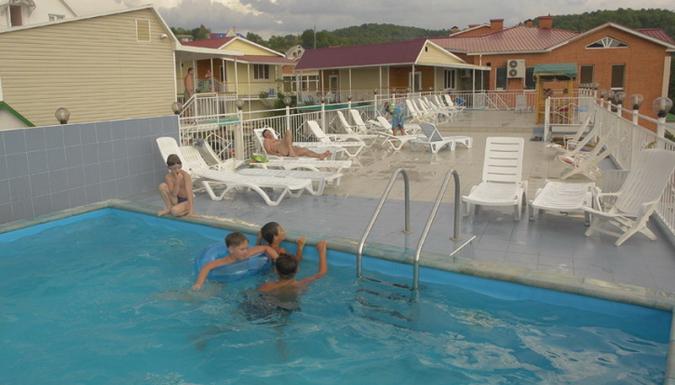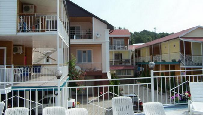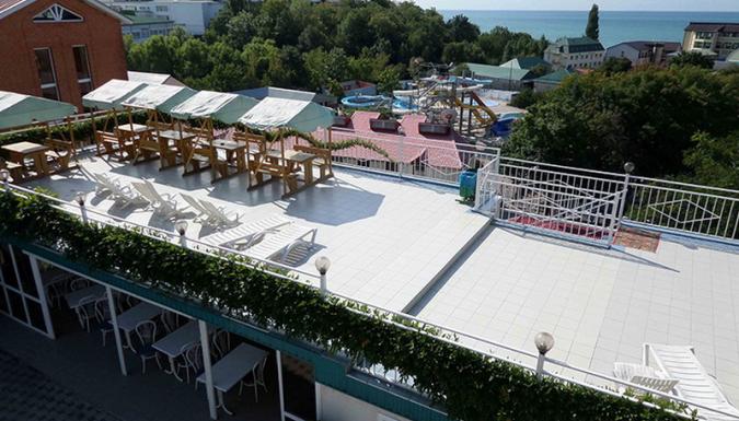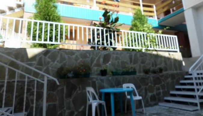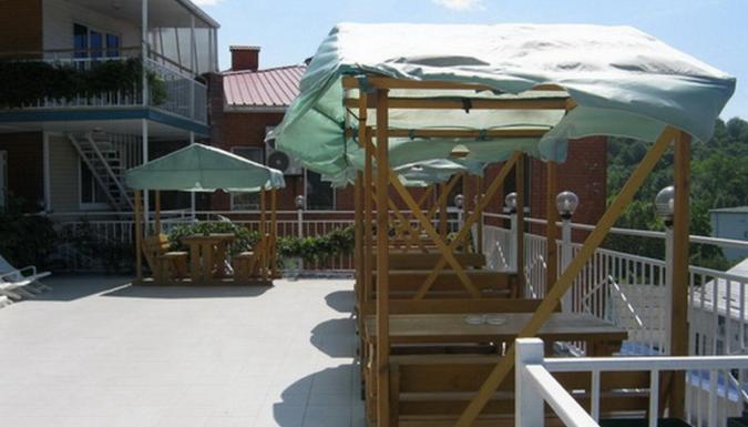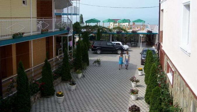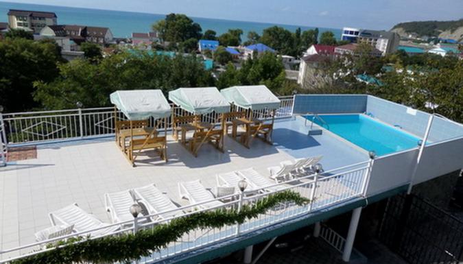Смотровая площадка с видом на море, горы и аквапарк. Прохладный бассейн с шезлонгами и столиками под навесами от солнца. Бар-кафе с мороженым, коньяком и прочими яствами. Территория гостевого дома охраняется.