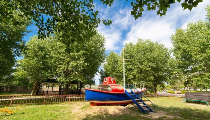 Есть огороженная территория. Тихая зеленая территория пансионата (6 га) расположена на берегу моря, огромный парк, свыше 700 сосен и тополей.