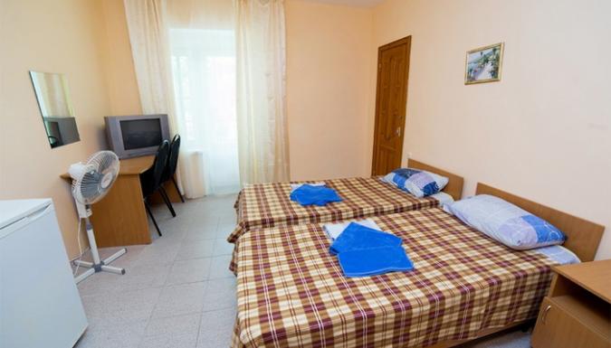 2-местный 2-комнатный стандартный номер (макс. 2+2 чел., 23 кв. м, телевизор, вентилятор, душ, умывальник, холодильник, туалет, две 1-спальные кровати). Доп. место - диван, может быть установлен без ограничения по возрасту.