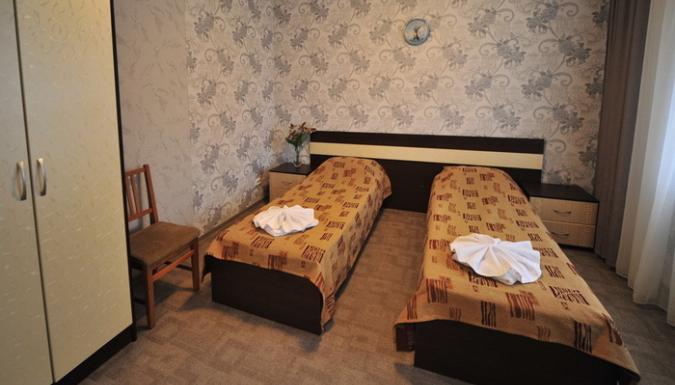 2-местный стандартный номер (макс. 2+1 чел., 12 кв. м, телевизор, кондиционер, душ, холодильник, 1-спальные кровати, туалет). Доп. место - еврораскладушка, может быть установлена для детей до 12 лет.