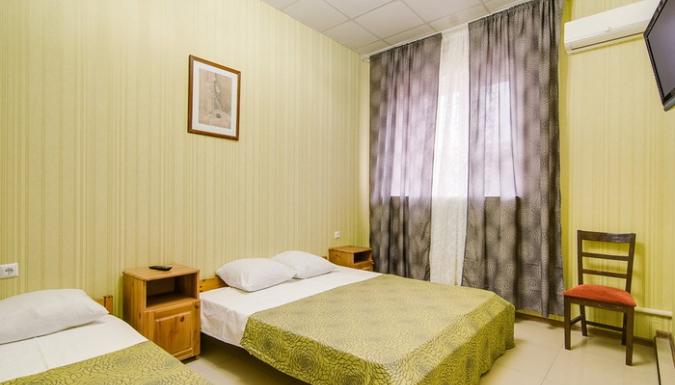 3-местный стандарт (макс. 3 чел., 18-20 кв. м, телевизор, кондиционер, душ/ванна, холодильник, 1-спальные/ 2-спальная кровать, прикроватная тумбочка, стулья, туалет).