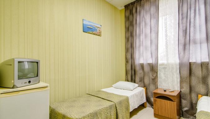 4-местный эконом (макс. 4 чел., 18-20 кв. м, телевизор, кондиционер, холодильник, 1-спальные/ 2-спальная кровать, прикроватные тумбочки, стулья, ванная комната).