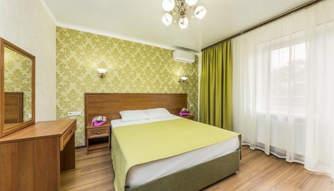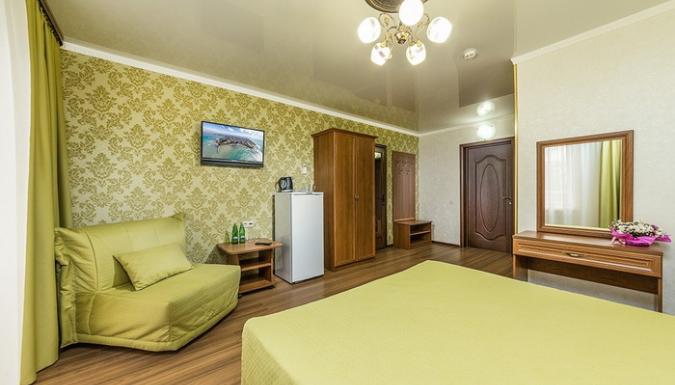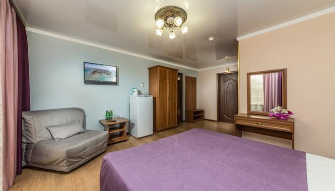 2-местный улучшенный студио (макс. 2+1 чел., 30-40 кв. м, телевизор, сплит-система, ванна, холодильник, 1-спальные/ 2-спальная кровать, туалет). Доп. место - раскладной 2-спальный диван, может быть установлен без ограничения по возрасту.