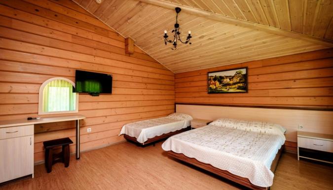 3-местный стандарт в деревянном корпусе (макс. 3+1 чел., 22-25 кв. м, телевизор, сплит-система, душ, фен, холодильник, терраса, 2-спальная кровать, 1-спальная кровать, журнальный столик, шкаф, санузел, возможно забронировать номер как 2-местный в деревянном корпусе.). Доп. место - кресло, или еврораскладушка, может быть установлена без ограничения по возрасту.