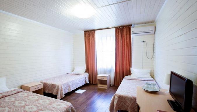 3-местный стандарт (макс. 3+1 чел., 18 кв. м, телевизор, кондиционер, душ/ванна, 1,5-спальная кровать, мини-холодильник, туалет). Доп. место - раскладушка, могут быть установлены без ограничения по возрасту.