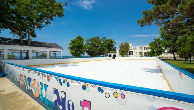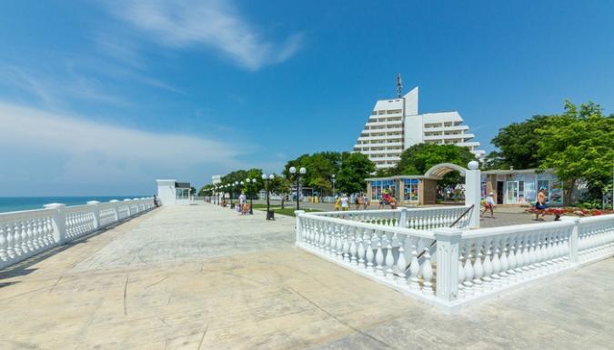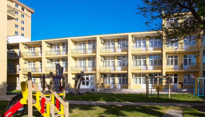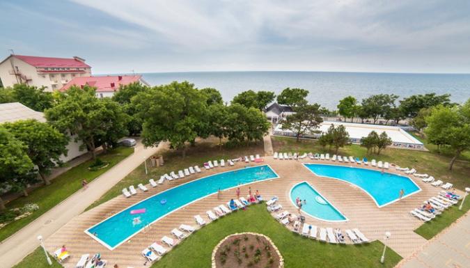 Бесплатно: крытый бассейн ( с морской водой (для путевок с лечением по показаниям врача), работает круглогодично), открытый бассейн (комплекс открытых бассейнов с морской водой.)