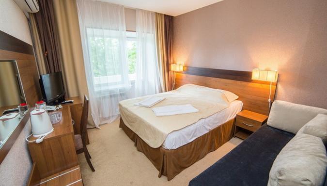 2-местный 1 категории (макс. 2+1 чел., 17-18 кв. м, телевизор, кондиционер, душ, умывальник, холодильник, балкон (в части номеров), 1-спальные кровати, туалет). Доп. место - еврораскладушка, или диван, могут быть установлены без ограничения по возрасту.