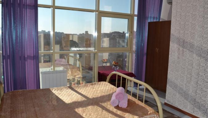 Изюминкой гостевого дома являются витражные окна в пол. В вечернее время можно любоваться огнями города и моря. На чердаке располагается кафе с террасой где приятно провести время с чашечкой утреннего кофе, или вечером с бутылочкой домашнего вина.