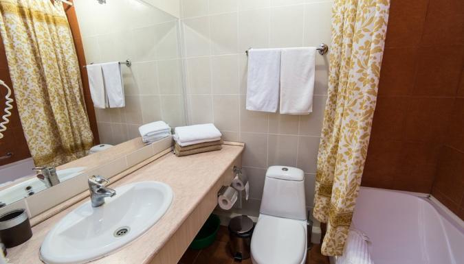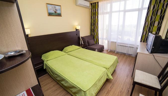 2-местный стандартный номер (макс. 2+1 чел., 18 кв. м, телевизор, кондиционер, ванна, фен, холодильник, балкон (в части номеров), сейф, телефон, 1-спальные/ 2-спальная кровать, туалет). Доп. место - кресло-кровать, может быть установлено без ограничения по возрасту.