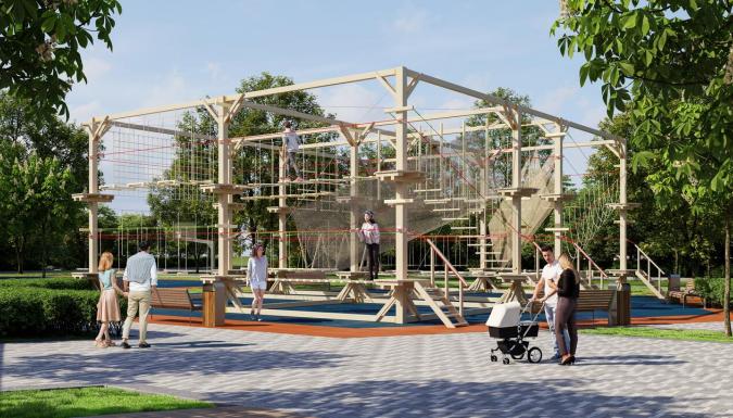 Рядом с детской площадкой располагается веревочный городок — настоящее приключение для всей семьи. В городке 4 трассы 2 уровней сложности, всего 24 этапа. В верёвочном парке нет ограничений по возрасту, карабкаться могут даже самые маленькие, это безопасно. К тому же в городке работают профессиональные инструктора, которые обеспечивают безопасность. Веревочный парк открыт с 9:00 до 21:00.