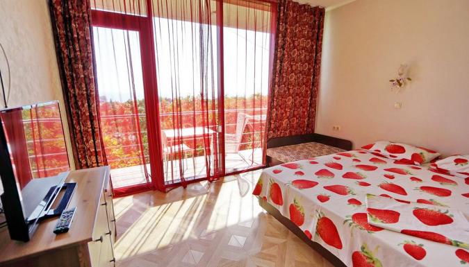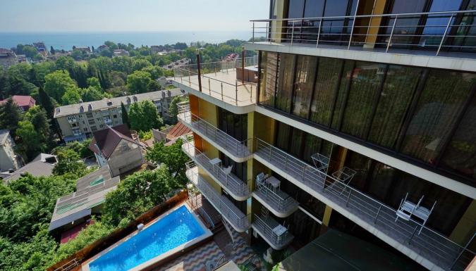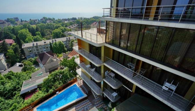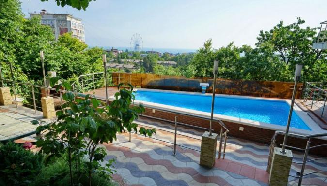 Гостиница расположена в тихом и спокойном месте центра курорта и с террас открывается отличный вид на море. Рядом находятся многочисленные кафе, столовые, магазины, сувенирные отделы и многое-многое другое. Дорога до центрального пляжа занимает 10-15 минут ходьбы по аллеям Лазаревского. На территории находится бассейн, места для отдыха, мангал, а для детей - детская площадка. Самостоятельно можно приготовить пищу на оборудованной общей кухне, а еще заказать питание в столовой.