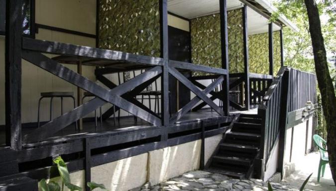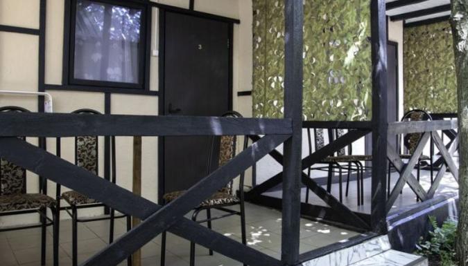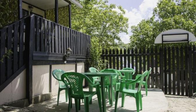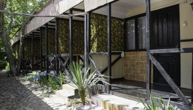 База отдыха расположена в 700-800 метрах от моря (10 минут ходьбы), в пяти минутах ходьбы от АКВАПАРКА. Огороженная охраняемая территория, аккуратный зеленый дворик с зоной отдыха, беседками и мангалом. Есть кухня можно самостоятельно готовить. На территории работает летний гриль-бар