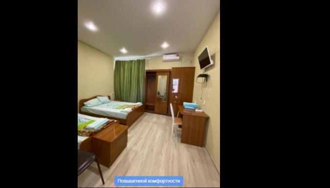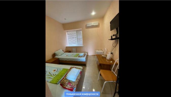 в 2-х, 3-х и 4-х местных номерах. В каждом номере санузел с душем, холодильник, кабельное телевидение, кондиционер, комплект посуды, интернет. Во всех номерах возможно дополнительное место. Уборка по требованию. Смена белья через 5 дней.