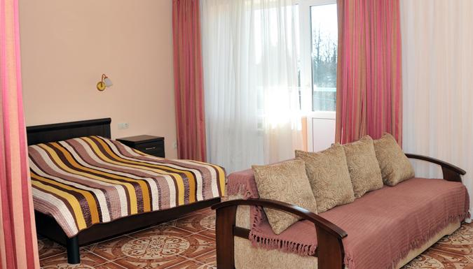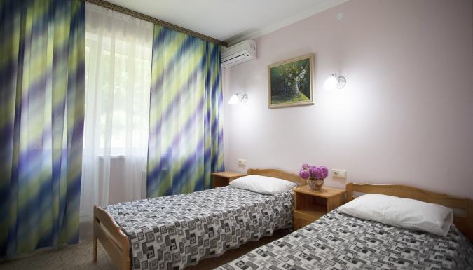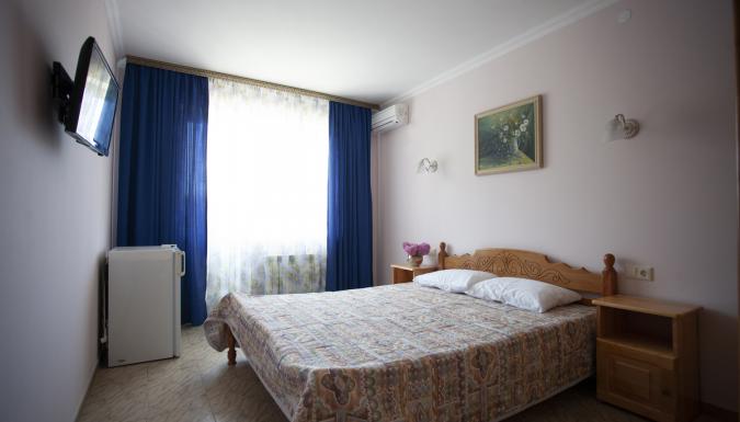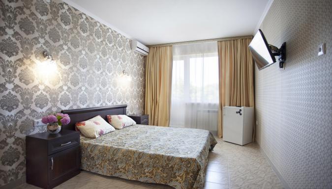 1-комнатные и 2-комнатные номера, в номерах телевизор, холодильник, сплит-система, зеркало, кровати, прикроватные тумбочки, шкаф, санузел с душем (поддон), балкон с мебелью, Wi-Fi, румсервис, уборка, постельные принадлежности