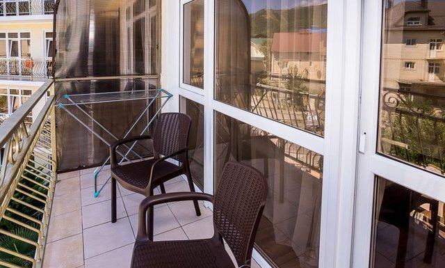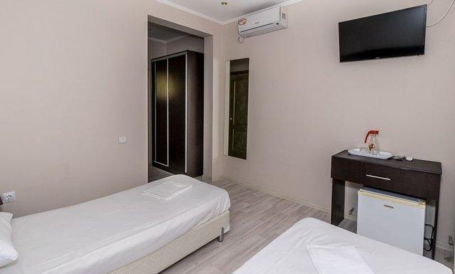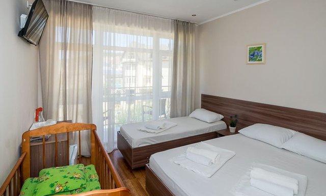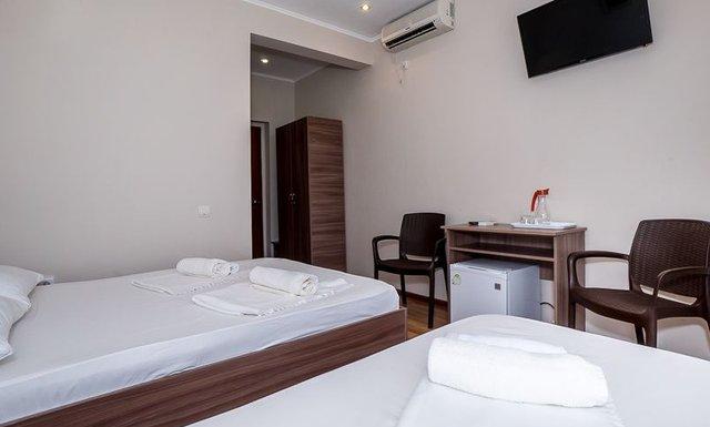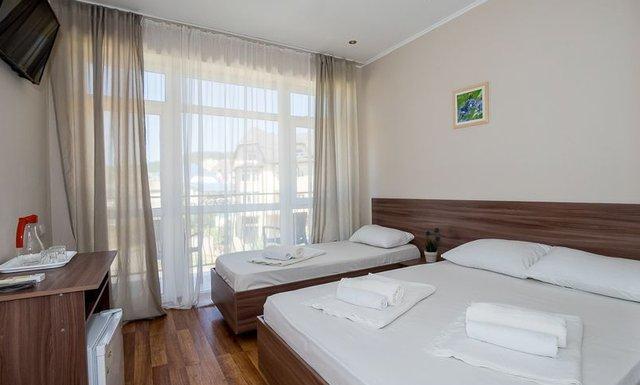 Номерной фонд отеля — двухкомнатные Люксы (до 6 чел.) и однокомнатные Полулюксы (до 4 чел.). Во всех номерах есть все удобства, современная мебель и индивидуальный балкон. Мебель: односпальные или двуспальная кровати, стол, стулья, шкаф-купе, прикроватные тумбочки, зеркало, еврораскладушки или детские кроватки (по запросу). Удобства в номере: кондиционер, вентилятор, телевизор, холодильник, телефон, Wi-Fi интернет, LCD ТВ, эл. чайник, фен, посуда, индивидуальный балкон, душ, санузел