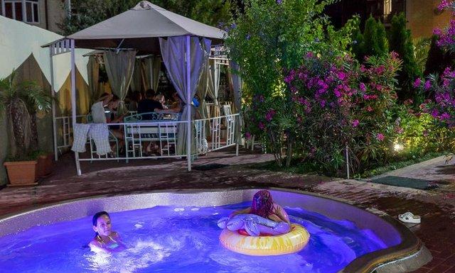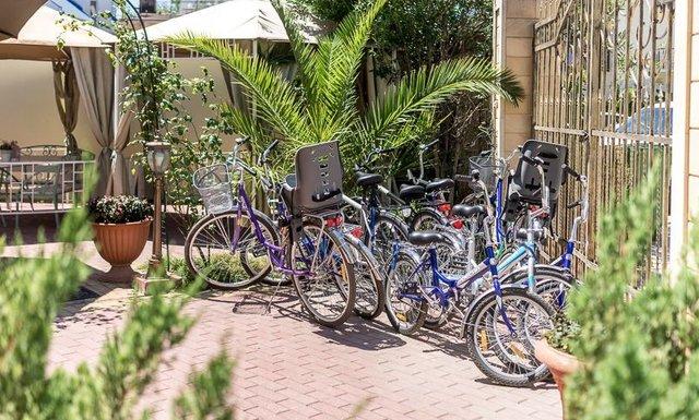 Автостоянка — бесплатный паркинг под видеонаблюдением, Место для отдыха — большая, утопающая в зелени, территория с множеством беседок и столиками, Бар — на территории работает бар с кофе, коктейлями, мороженым и легкими закусками, Мангал — мангал и тандыр в распоряжении гостей бесплатно, Кухня — к услугам гостей оборудованная кухня для самостоятельного приготовления с плитами, мойками, кастрюлями, сковородами и всей прочей необходимой посудой и утварью и залом для приема пищи. В отеле работает бесплатный прокат велосипедов, на которых можно совершить увлекательные поездки в очень отдаленные и живописные места на лоне природы.