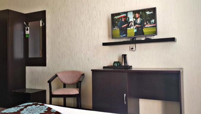 Шкаф или гардероб, Кондиционер, Сейф, Москитная сетка, Отопление, Холодильник, Электрический чайник, Рабочий стол, Телевизор, Телевизор с плоским экраном, Розетка около кровати, Вешалка для одежды, Сушилка для одежды