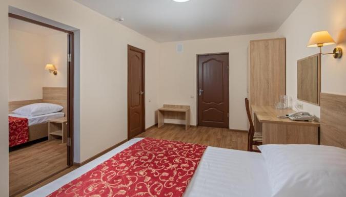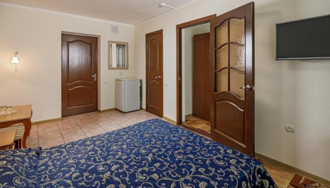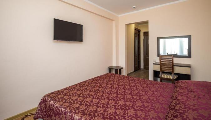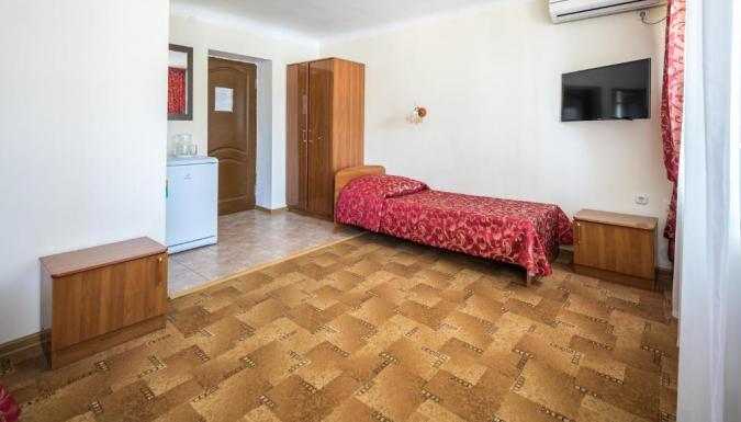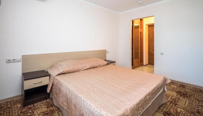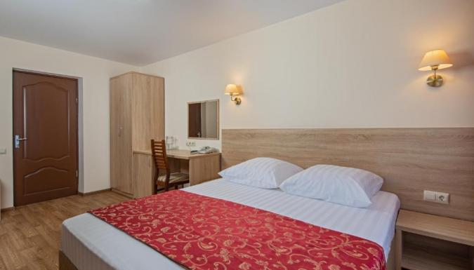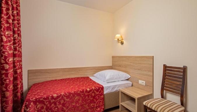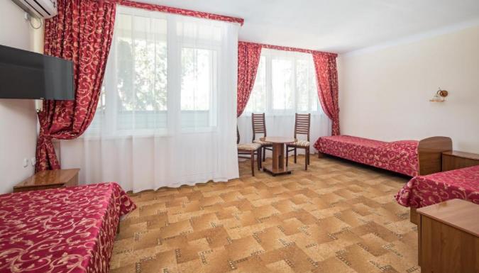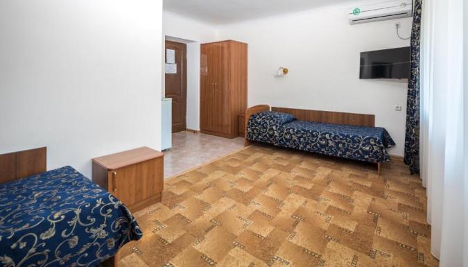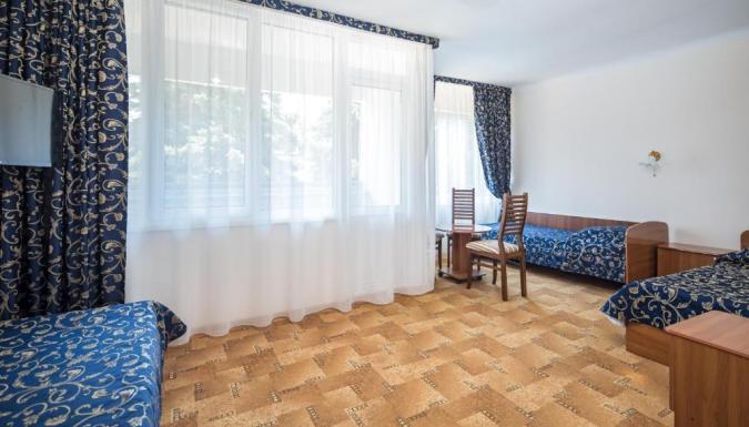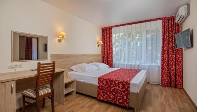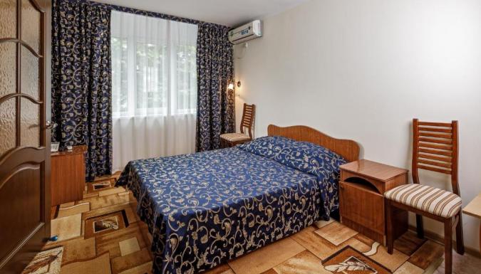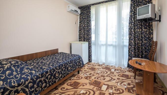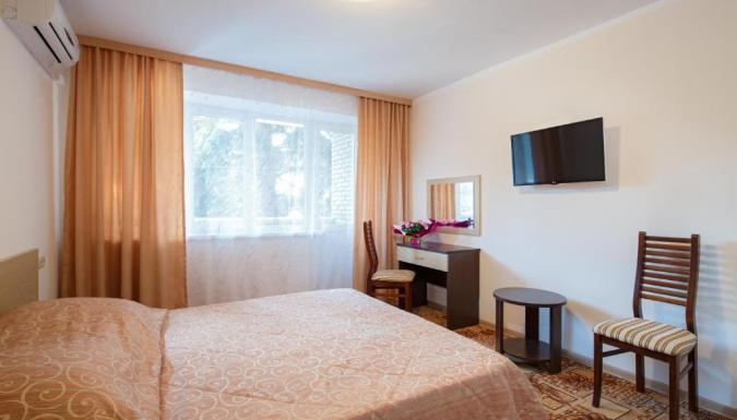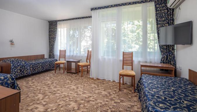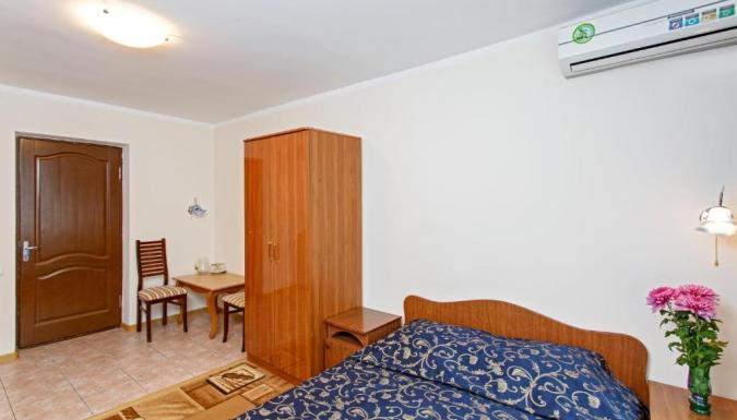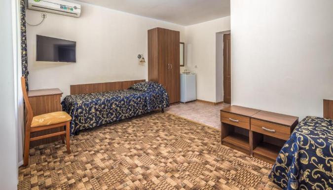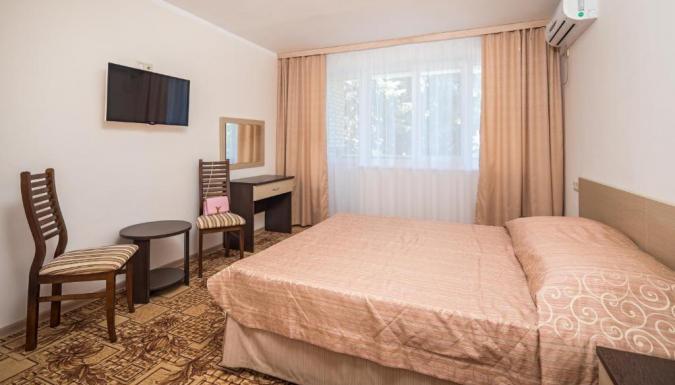 Номера отеля "Пансионат Приморский" оформлены в строгом стиле и оснащены шкафом, холодильником и письменным столом. Во всех номерах работает кондиционер