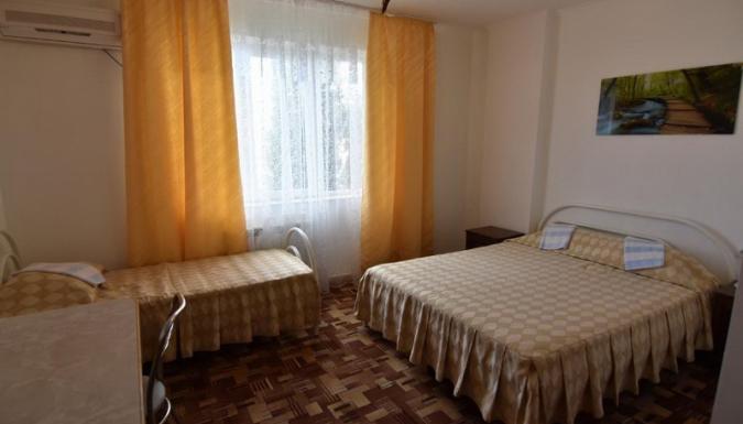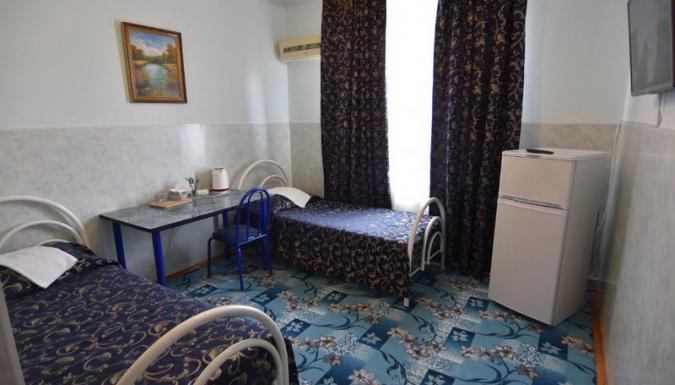 2-3-4х местные номера со всеми удобствами. В номерах: односпальные либо двуспальная кровати, шкаф, стулья, прикроватные тумбочки, стол, вешалка, прихожая, зеркало, кондиционер, холодильник, телевизор, посуда. В 4-х местных номерах имеется индивидуальная кухня. Все номера оборудованы Wi-Fi.
