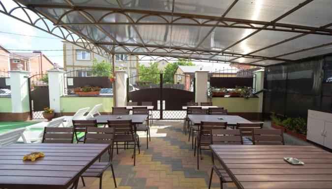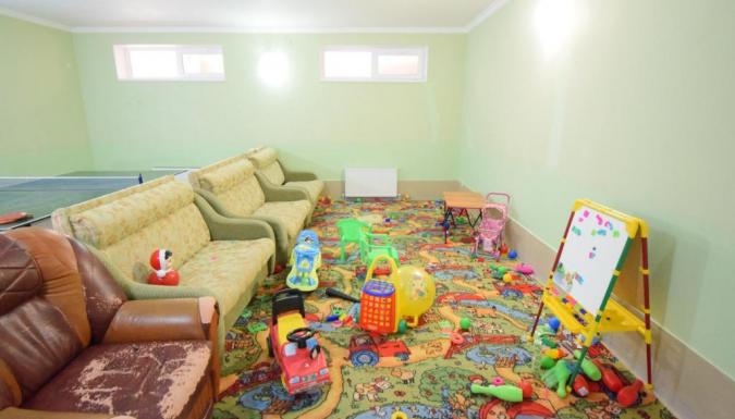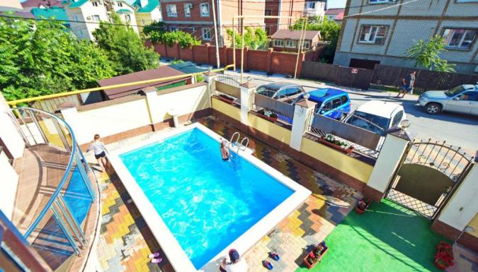 Благоустроенный внутренний двор с бассейном с современной очисткой воды (4.5м на 5м, глубина 1.8м) позволит гостям насладиться отдыхом в полной мере. Помимо плавания в прохладной и чистой воде бассейна, можно также позагорать на шезлонгах, поиграть в бильярд, посидеть под зонтом за столиком, а малыши могут поиграть на детской площадке с горкой и качелями или заняться творчеством в детской комнате в компании своих сверстников. Бассейн с подогревом. На территории имеется кухня для самостоятельного приготовления пищи