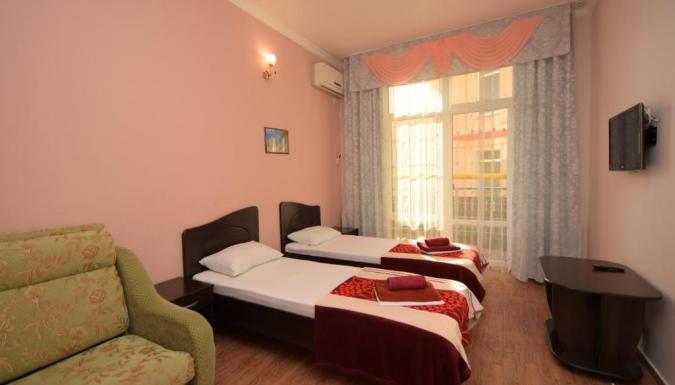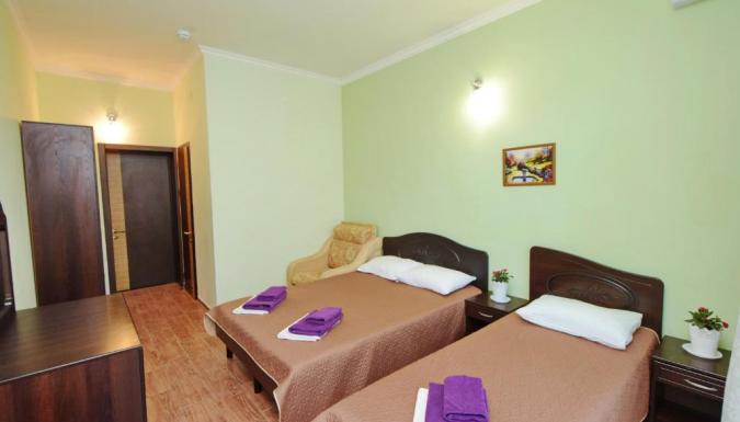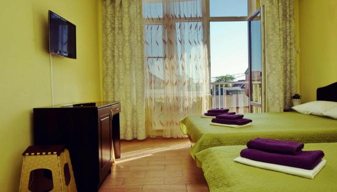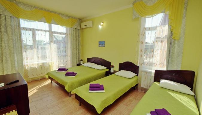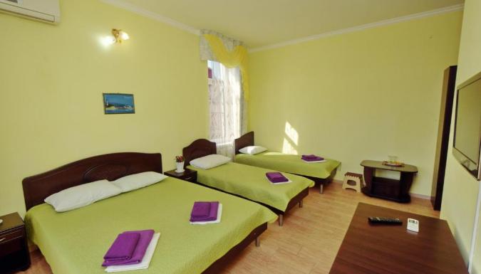 К услугам гостей 2-3-4-местные номера. Все номера с удобствами и оборудованы сплит-системами, холодильниками и телевизорами, к услугам гостей удобная современная мебель: односпальные или двуспальная кровати, шкаф, стулья, пуфики, прикроватные тумбочки. Гостям предоставляется бесплатный доступ в интернет Wi-Fi, в каждом номере Цифровое телевидение. Из окон большинства номеров открывается вид на море.