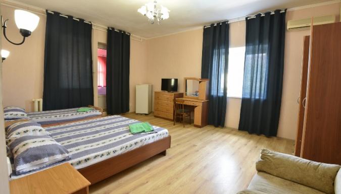 Просторный и благоустроенный двор с бассейном, детской площадкой, беседкой, мангалом располагает к приятному времяпровождению. Для Вашего удобства работает столовая, где за доп. плату можно заказать завтрак, обед и ужин. Работает Wi-Fi (бесплатно по всей территории) В общем доступе гладильные принадлежности. Стиральная машинка - платно. Открытая парковка на территории (бесплатно). За отдельную плату организуем встречу и проводы гостей.