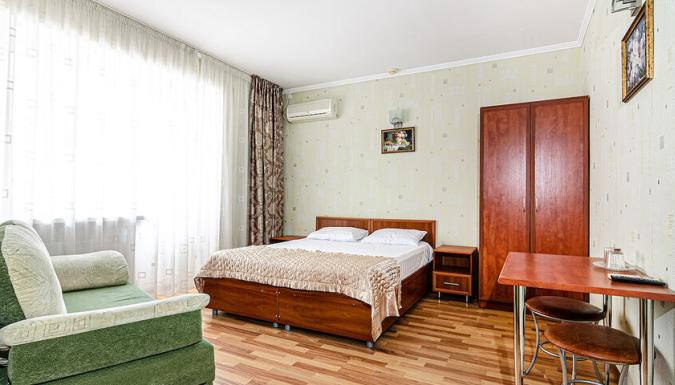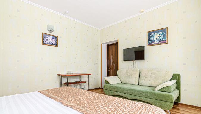 Двухместный номер со всеми удобствами: туалет, умывальник, душ, телевизор, холодильник, кондиционер, фен. Основные места кровати. Возможно дополнительное место кресло-кровать. Площадь номера - 24 кв.м.