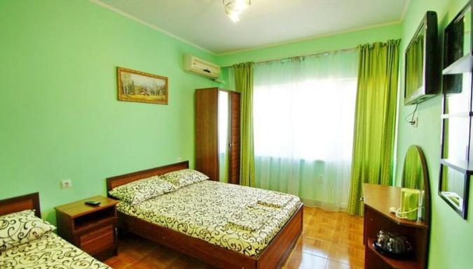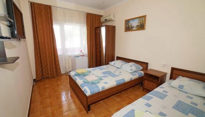 Корпус 2 (с бассейном на крыше) – 2-х местные номера со всеми удобствами: балкон, туалет, умывальник, душ, телевизор, холодильник, сплит-система(кондиционер), бесплатный Wi-Fi.