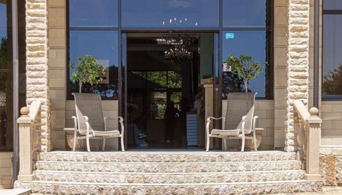 Пятиэтажный корпус отеля возвышается в 250 метрах от моря.